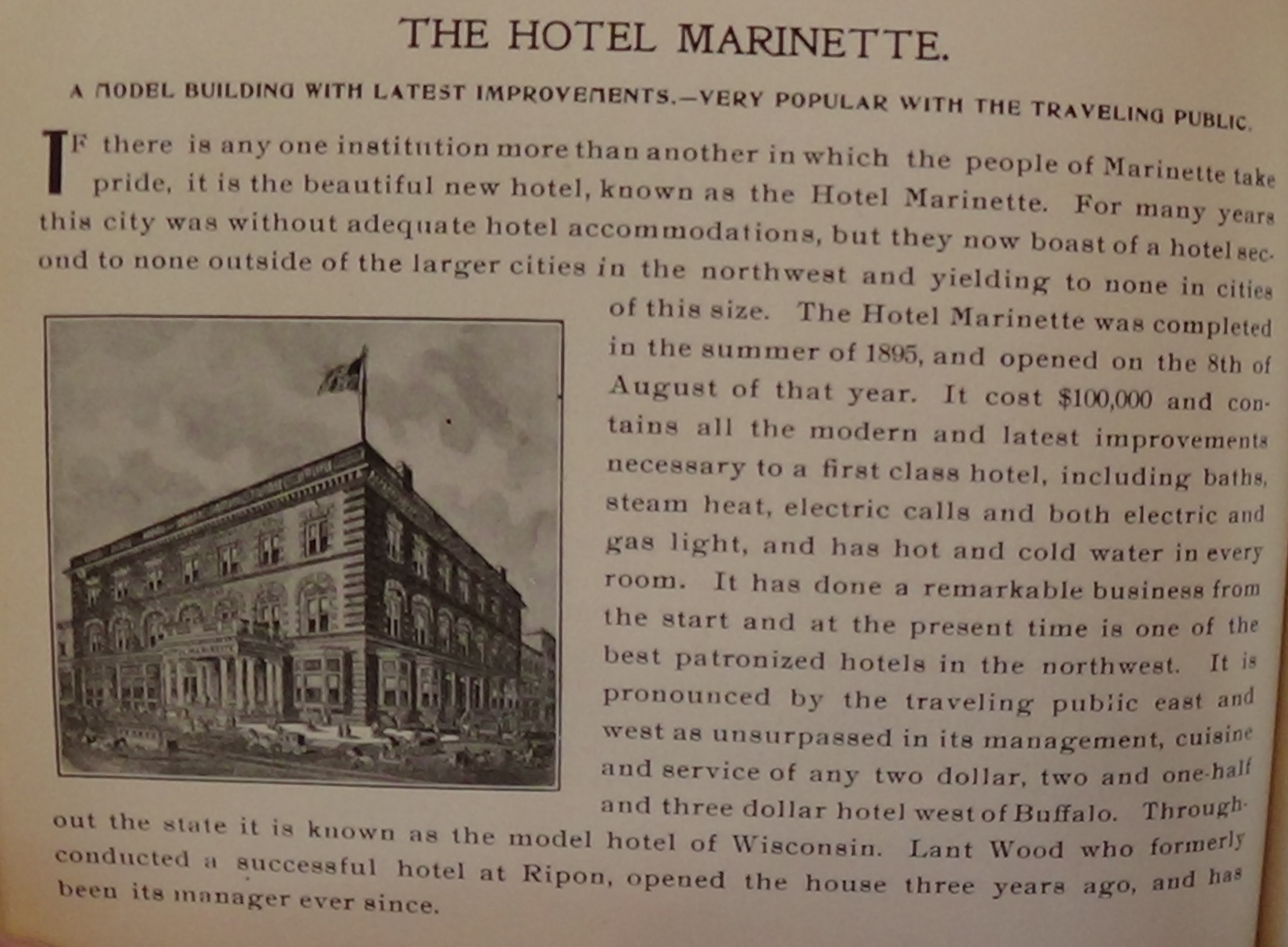 Fairchild & Flatt is pleased to share the complete contents of the 1898 Marinette Illustrated (Martin, C. J. Marinette Illustrated: A Souvenir containing views of all parts of the City of Marinette, Wis. Milwaukee: Riverside Printing Co., 1898).