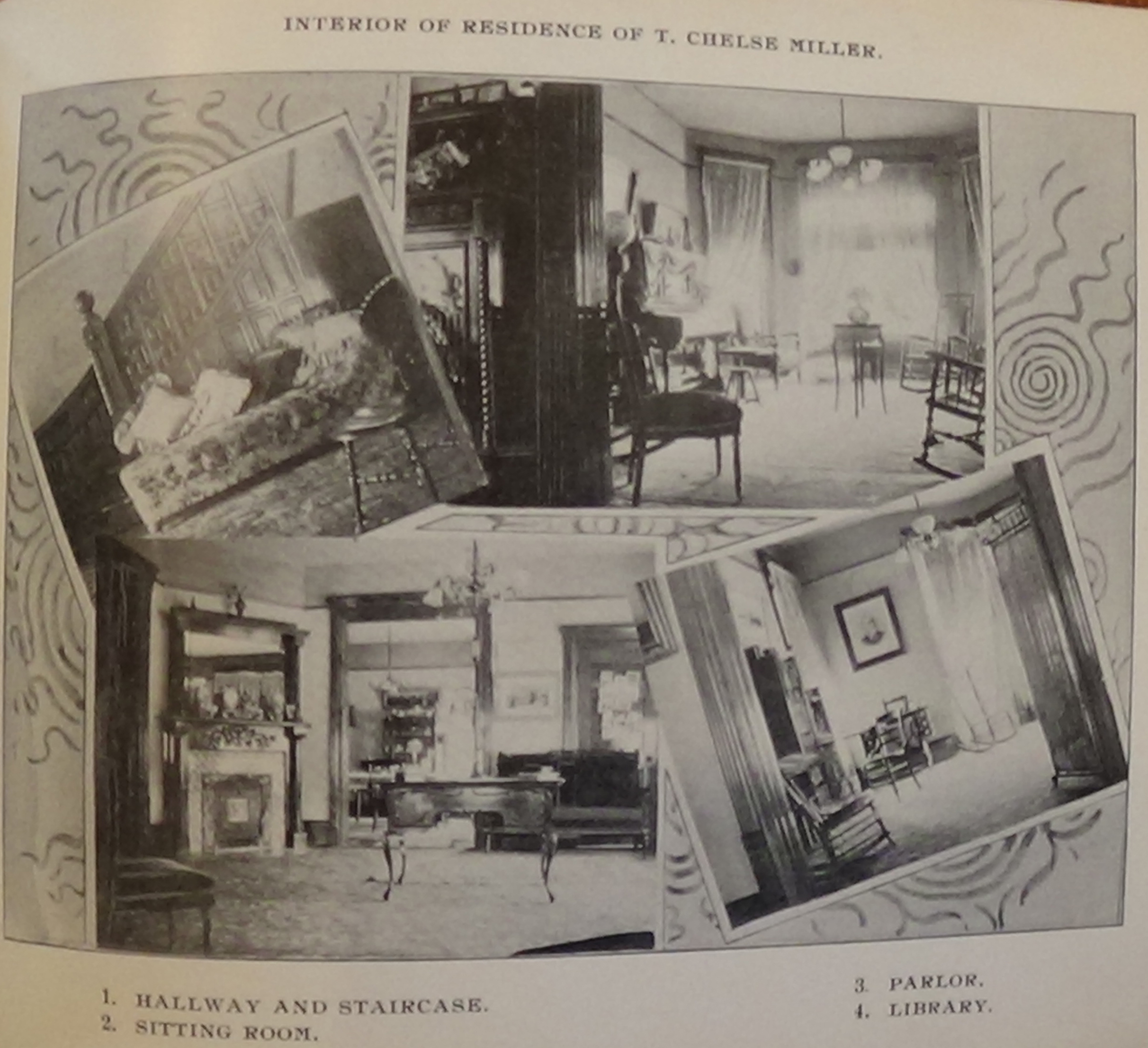 113 – Interior of Residence of T. Chelse Miller – Hallway and Staircase, Sitting Room, Parlor, Library